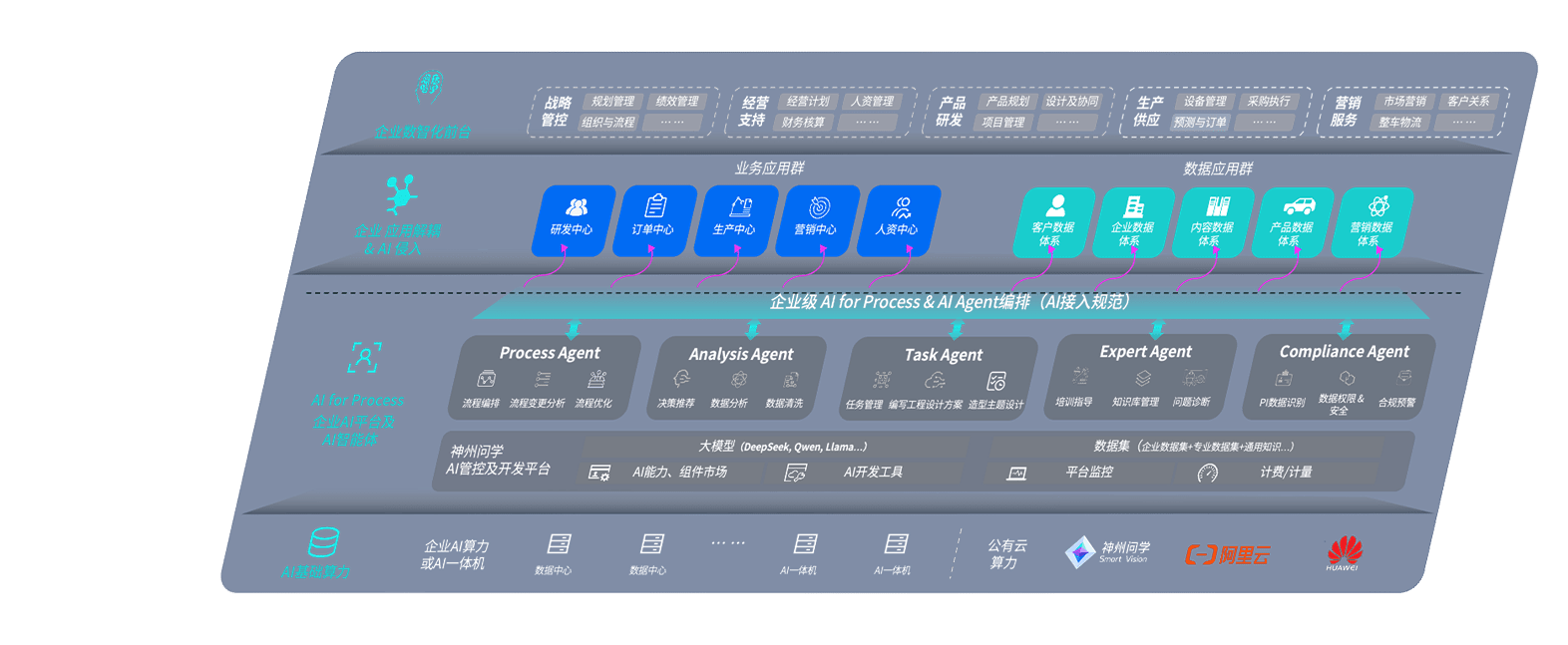 意昂2问学智车解决方案是一套基于AI技术的汽车行业智能化系统,,,覆盖从底层算力到顶层AI应用的全栈方案。。方案由算力层、、、模型层和应用层组成:算力层,,,方案支持多种一体机配置,,,具备云端灵活部署、、多云适配以及动态优化计算资源的能力;模型层,,,意昂2问学平台版提供了企业级AI应用一站式构建与管理平台,,,支持基于后训练强化技术的汽车企业专属模型的训练、、评测和运营;应用层,,,意昂2问学DeepSeek版提供包括超级员工、、、、智能招采、、、、智能营销、、智能客服、、、、AI for BI等一系列解决方案,,,,可助力汽车行业实现数字化转型,,,让管理更智能、、响应更敏捷。。。。